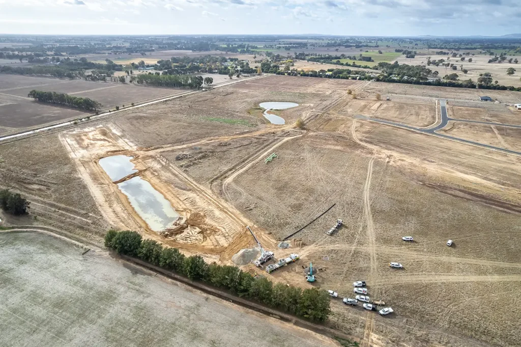 Lauriston Estate is a proposed 182-lot, low density residential subdivision, located on Grace Road, Shepparton North. The 57 hectare site was originally farmland that was rezoned to (LDRZ) prior to the issue of the Planning Permit in 2018. The Development is proposed to be constructed in 8 Stages. The Stages are comprised of low density residential lots ranging in size from 2000m² – 5000m², open space reserves with play equipment, BBQ facilities and Basketball / Netball half court, plenty of seating, pre- existing mature trees along with the addition of garden areas and irrigated grassed space. The overall masterplan will include a landscaped wetland that will not only add to the aesthetics but also provide treatment of the stormwater runoff from the development. There will also be additional open space incorporating the drainage retention area. A shared path network will be provided to encourage residents to get out and move through the neighbourhood.
