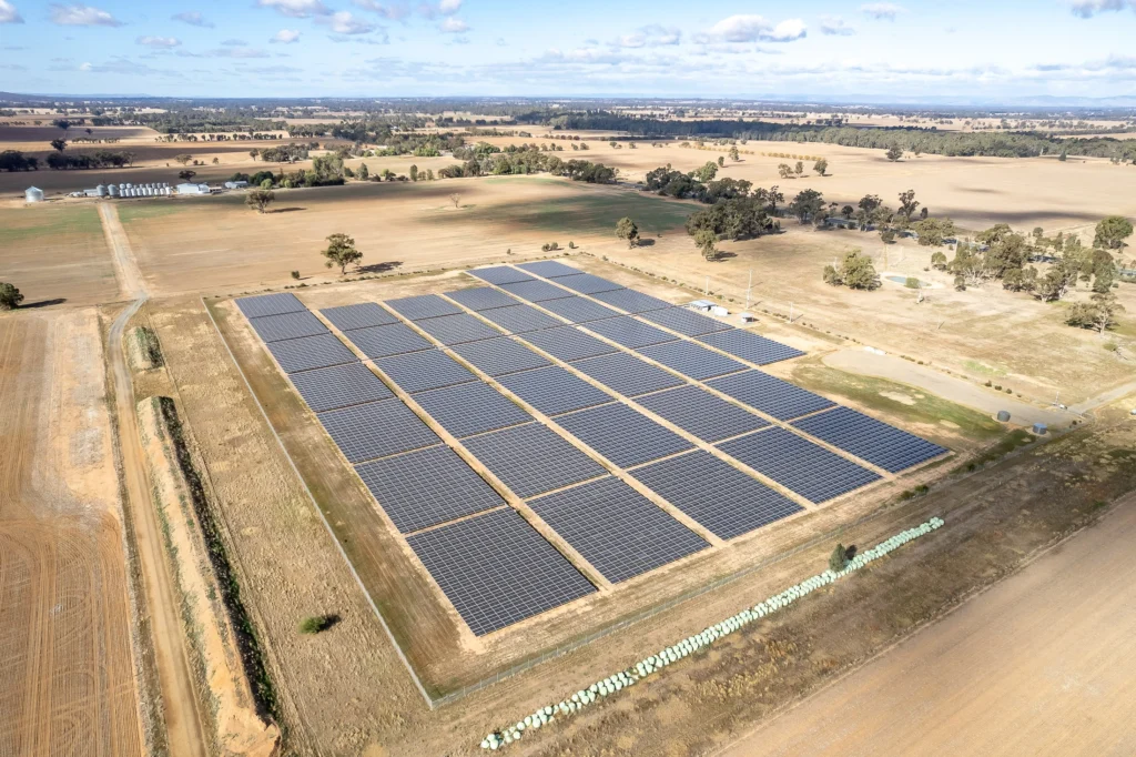 This footprint of the facility is less than 15 hectares and provides a supplementary annual income for the landholder’s farm, with the farmer continuing to farm right up the fence of the facility.